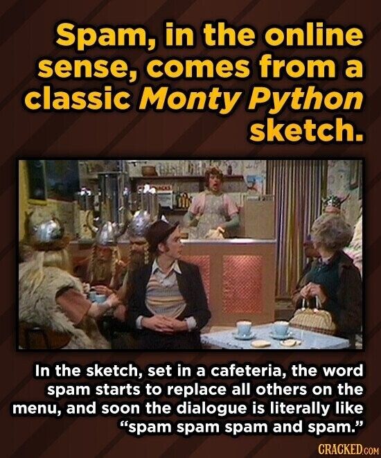 My family went out of town to see the new movie E.T. the Extra-Terrestrial. Before it started, I studied the candy counter and saw something intriguing called Reese's Pieces that looked like M&Ms with peanut butter inside. The clerk said they were brand new and sold me some. I was munching those delicious morsels during the movie and saw Elliot clearly luring E.T. with Reece's Pieces. Now it all made sense- it was a promotional tie-in. And that's how we all learned about product placement. Reece's Pieces became a hit. It's happened with other movies, sometimes intentionally, but often accidentally, as in the adoption of Monty Python's "spam" as the perfect term for junk email. And dramatic stories sometimes unrealistically raise our expectations for the real thing.